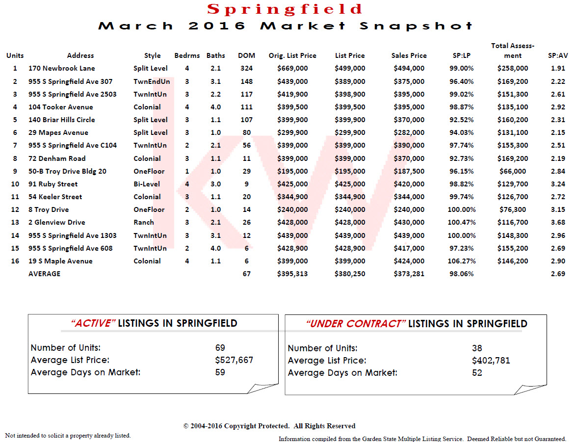 Springfield 2016 March and 1st Quarter Real Estate Report