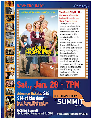 On Saturday, January 28 at 7 pm, the Film Society of Summit will host the area premiere of the dramatic film THE GREAT GILLY HOPKINS. We will welcome the two of the film’s young actors to lead post-screening discussion of this entertaining film: Zachary Hernandez of Wycoff, NJ who plays W.E. and Claire Foley who plays Agnes.